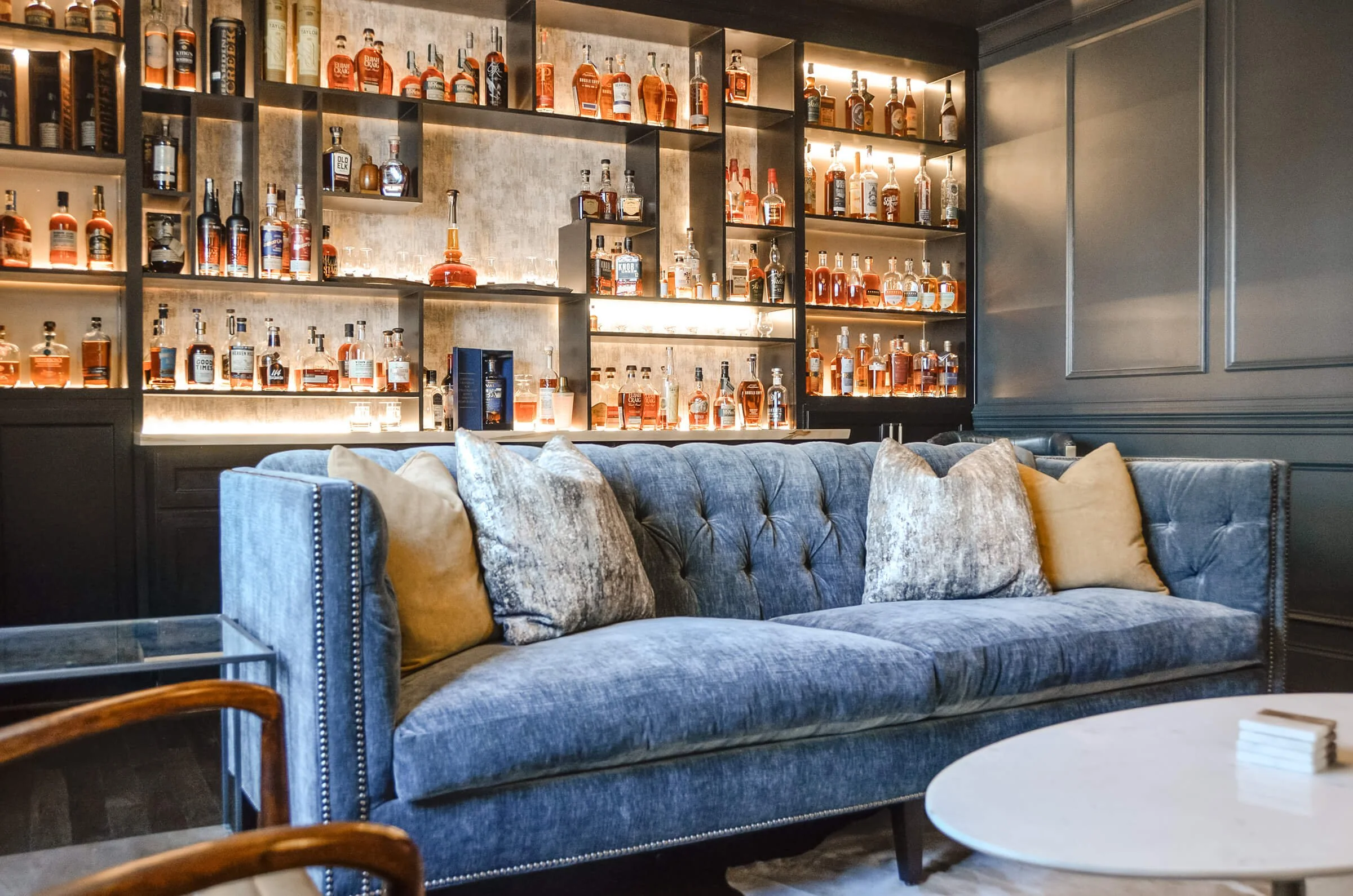 Creating a custom bookcase for 151 bottles was the creative brief β designing the secret door entry was the icing on the cake.